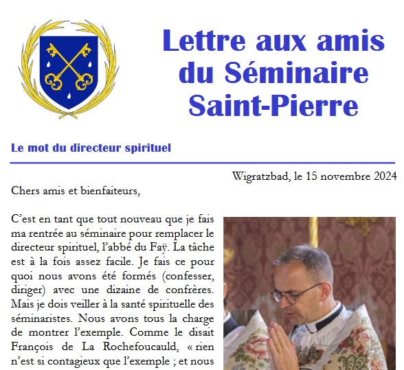 La Fraternité Saint-Pierre accueille 32 séminaristes en année de discernement (propédeutique) : 16 au Séminaire Our Lady of Guadalupe de...